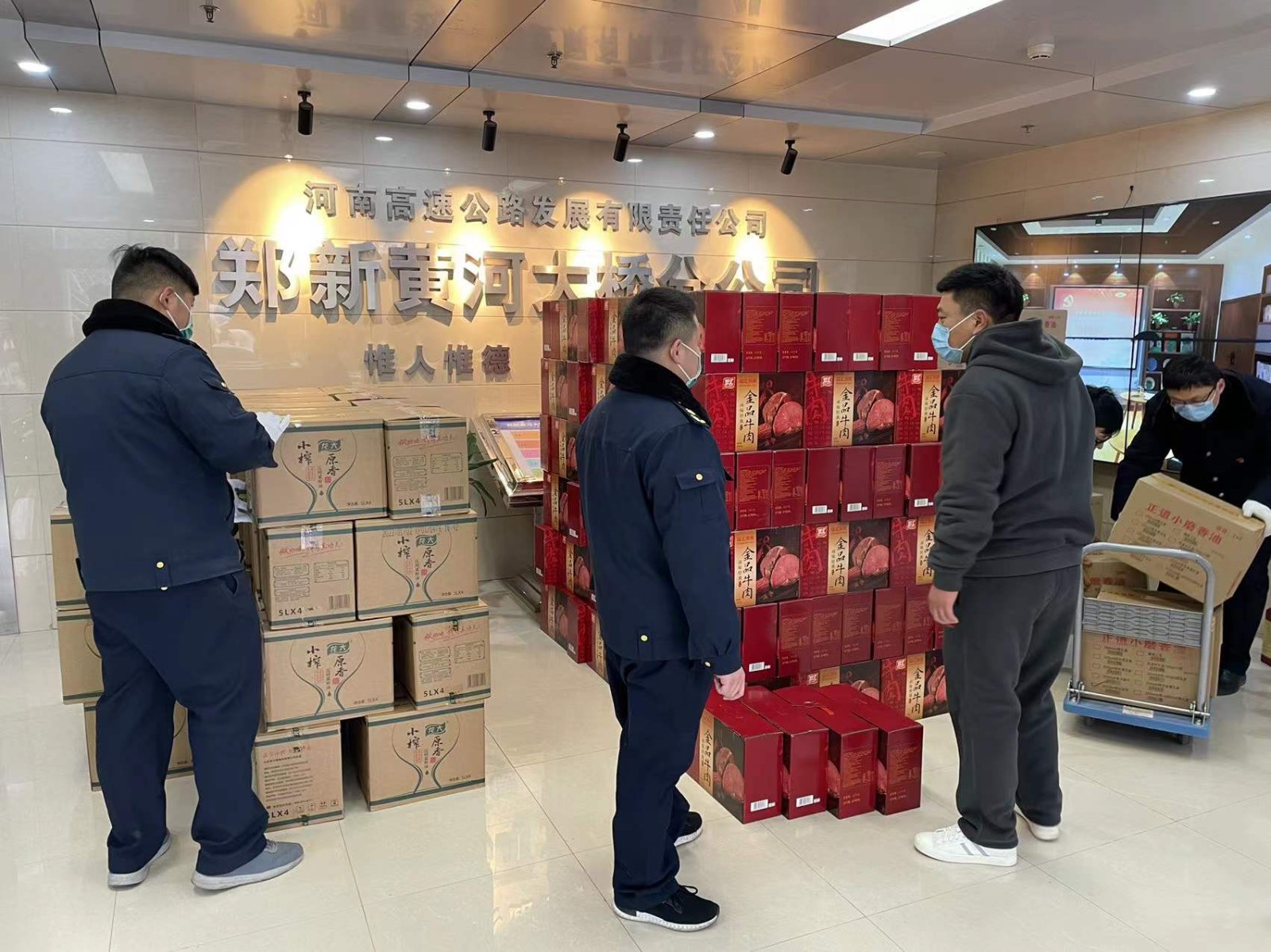 公司圓滿完成高發(fā)公司鄭新黃河大橋分公司春節(jié)慰問品配送任務(wù)