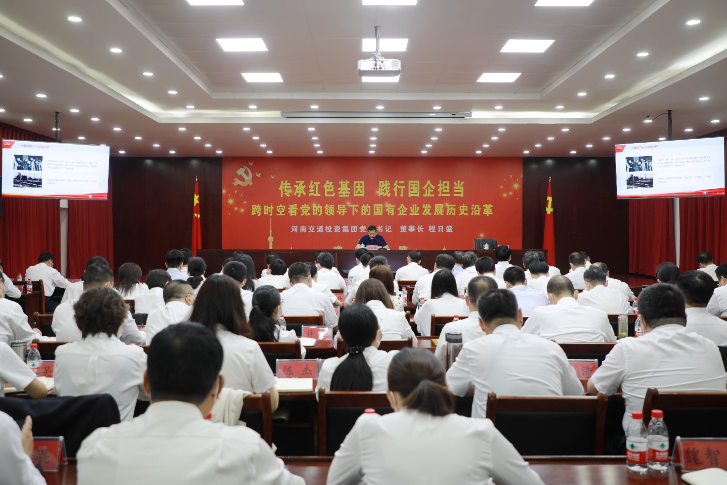 5月12日,集團(tuán)黨委書(shū)記、董事長(zhǎng)程日盛到交投服務(wù)區(qū)公司以《傳承紅色基因 踐行責(zé)任擔(dān)當(dāng)——跨時(shí)空看黨的領(lǐng)導(dǎo)下的國(guó)有企業(yè)發(fā)展歷史沿革》為題,講了一堂內(nèi)容豐富、深刻生動(dòng)的專題黨課。集團(tuán)相關(guān)領(lǐng)導(dǎo)及集團(tuán)黨委辦公室、綜合事務(wù)辦公室、投資發(fā)展部、人力資源部、營(yíng)運(yùn)管理部、紀(jì)檢監(jiān)察部主要負(fù)責(zé)人陪同出席。公司班子成員、部門(mén)中層及所屬單位班子成員、所屬各黨支部書(shū)記共120余人參加學(xué)習(xí)。