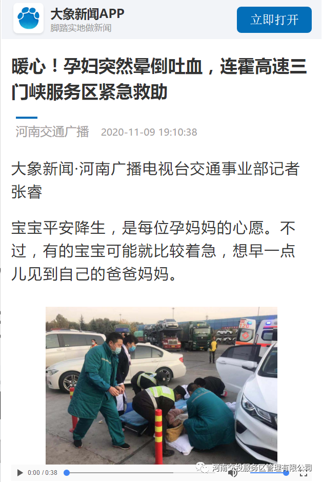 大象新聞、河南交通廣播電臺:暖心!孕婦突然暈倒吐血,連霍高速三門峽服務(wù)區(qū)緊急救助
